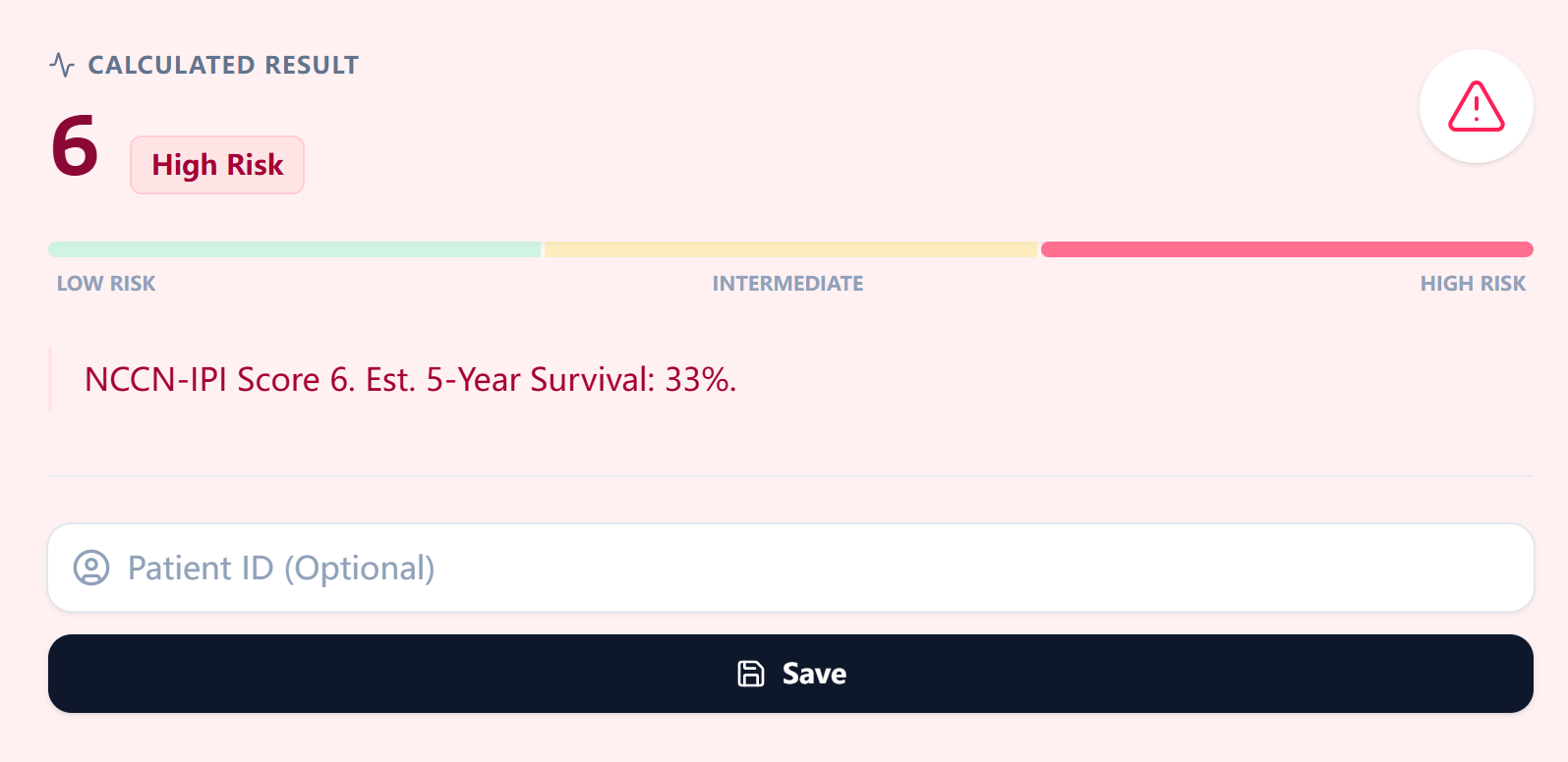On our platform, the NCCN‑IPI (Lymphoma) calculator removes this friction by: